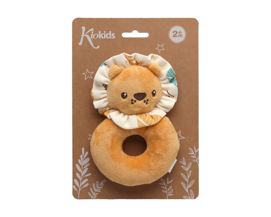 É um brinquedo perfeito, da Kiokids, com cerca de 16cm, para as primeiras interacções do bebé com as mãos enquanto agarram e movem objectos.